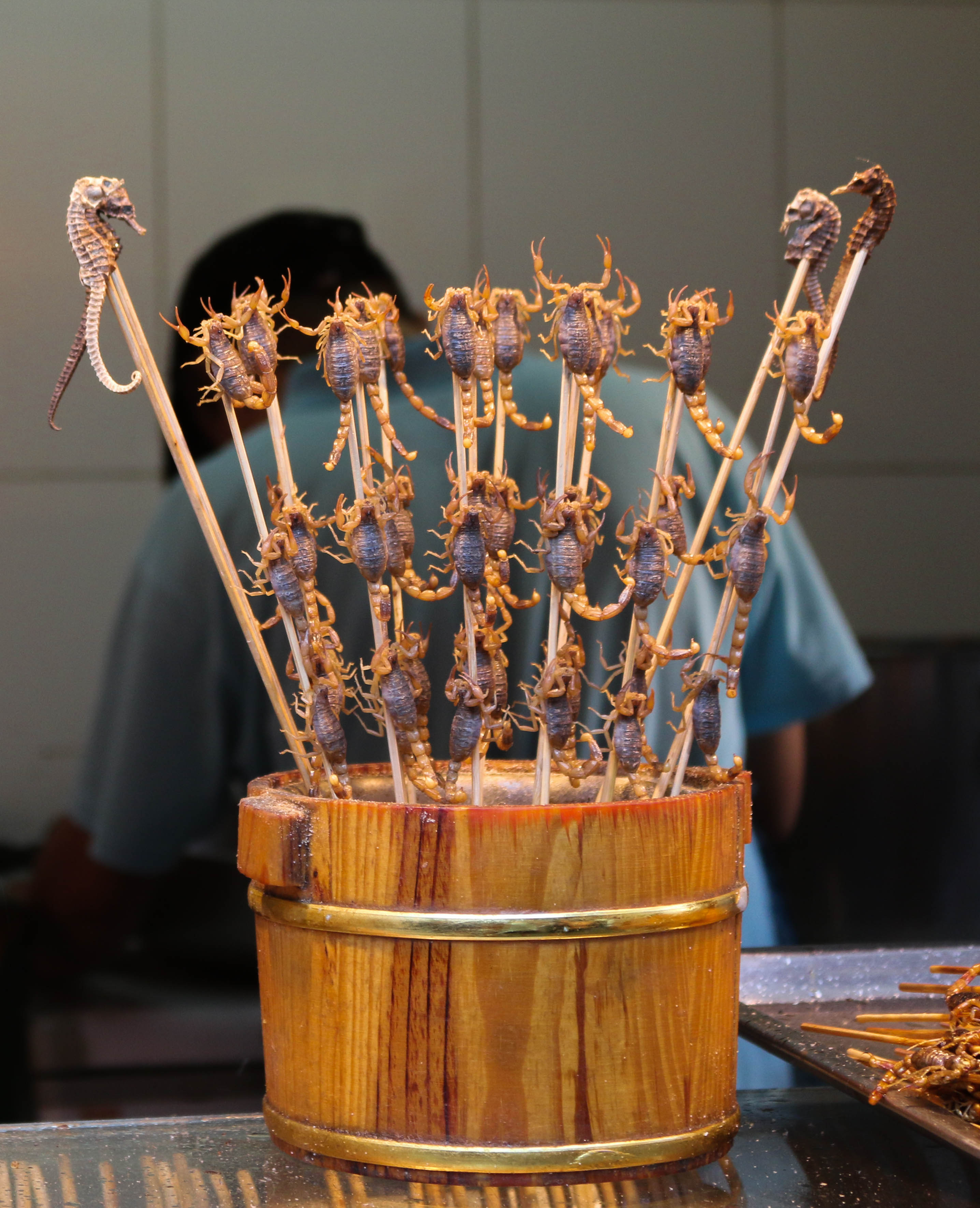 Uns steht ein langes Urlaubswochende bevor. Die Chinesen nennen es die Goldene Woche, die letzten Brückentage um Verwandte und Freunde zu besuchen, Peking zu verlassen und die letzten warmen Sonnenstrahlen zu genießen bevor es winterlich kühl wird. Die Stadt wird dann leerer, der Verkehr weniger lebensbedrohlich und auch Shane hat ein paar Tage frei. Das bedeutet mehr Sightseeing. Ihr kennt uns ja, die steten Wanderer, und vor allem mich und meine Vorliebe stundenlang von einem Monument zum nächsten zu laufen. Natürlich haben wir schon einen Abstecher zum „Himmelstempel“ gemacht. Das Wetter war unglaublich gut. Sonnenschein pur und kein Smog in Sicht. Gut, dass ich die Kamera dabei hatte um das zu beweisen. Ach ja, auf dem Markt haben wir auch mal typisch chinesische Spezialitäten ausprobiert. Achtung: Nix für schwache Nerven.