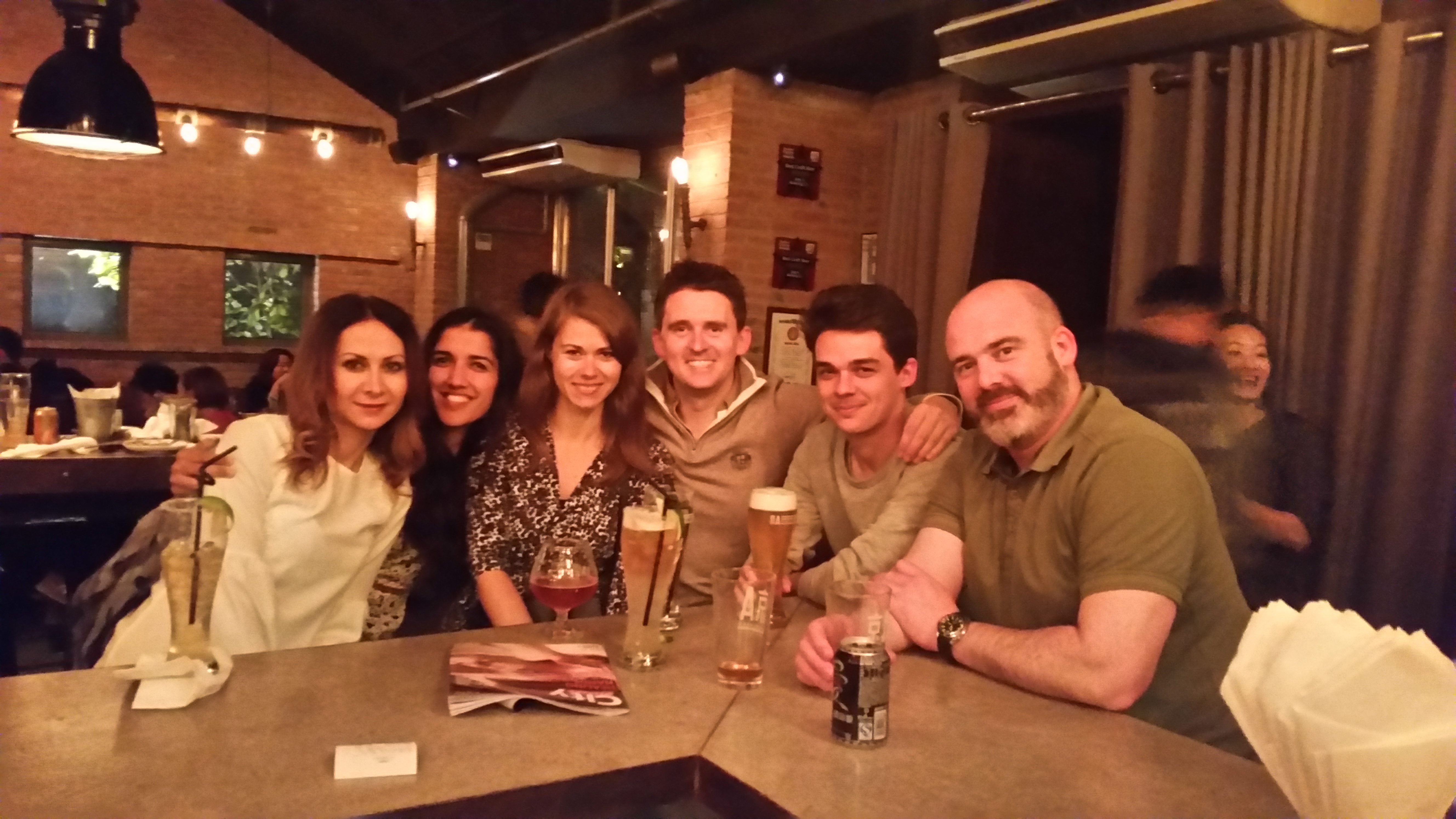 Auch der Smog konnte uns aber nicht davon abhalten weiterhin neue Freunde zu suchen. Das ist uns auch Dank unserer großen Sportfreude gelungen. Eine Kollegin von Shane spielt jeden Freitag abend mit ihrem Ehemann und einem weiteren Päarchen Badminton. Wir sind dann einfach mal dazugestoßen und hätte keine bessere Wahl treffen können. Ihr kennt mich ja, eigentlich bin ich nicht der große Athlet und Teamsport gehörte schon gar nicht zu meinen Lieblingsbeschäftigungen aber ich muss gestehen, dass Badminton mein neuer Traumsport geworden ist und das Highlight unserer Wocher darstellt. Wir denken schon Montag wieder daran bald Badminton spielen zu können. Ein goßes Danke geht dafür natürlich an unsere beiden gegnerischen Teams. (Catherine und Charlie kommen aus Irland und Nico und Sandra sind ein Französisch-Deutsches Päarchen). Shane und ich sind auch ganz gut im Team. Noch ein wenig mehr Übung und bald können wir es auch mit echten Chinesen aufnehmen! Im Anschluss gehts dann immer in eine unseren Lieblingsbars. Das Schillers. Man ist ja schließlich durstg nach einer Stunde hin und her rennen…na und verdient haben wir es uns auch.